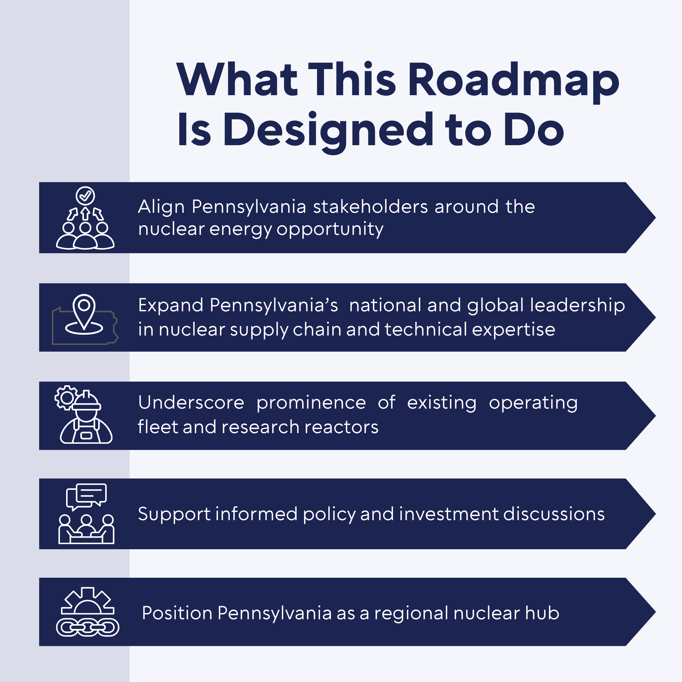 This roadmap will evolve through continued collaboration. The framework reflects current knowledge and stakeholder input. As technologies advance and market conditions change, continued engagement across Pennsylvania’s nuclear ecosystem will allow the roadmap to adapt and remain useful over time.